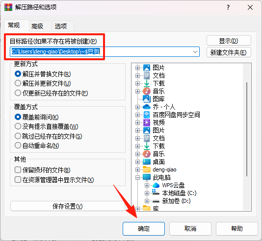 2、确认好目标路径后点击【确定】即可成功解压文件。