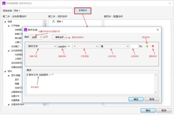 在用例编辑界面中单击添加“条件按钮”添加条件。