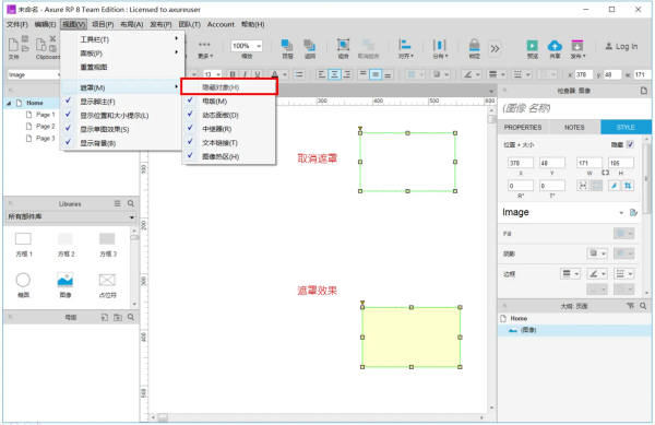 在“菜单”-“视图”-“遮罩”的选项列表中,取消相对应的勾选。例如,画布中隐藏的元件不显示黄色阴影。
