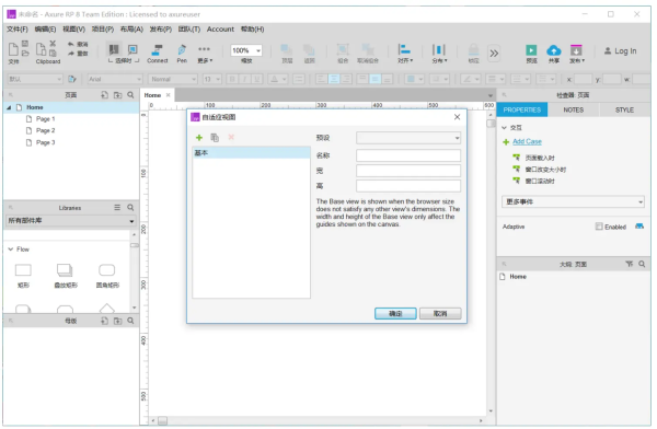 自适应视图是指编辑多种分辨率原型,设备中查看时,系统会根据自身分辨率,自动与分辨率相适应进行匹配,并且显示出来。自适应视图在“项目”-“自适应视图中进行设置”。