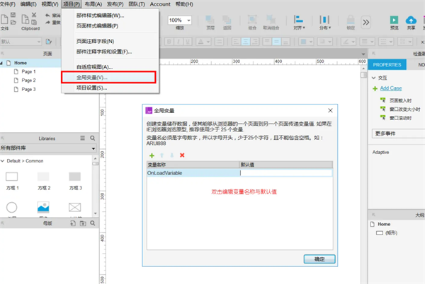 全局变量是一个数据容器,就像一个U盘,可以把需要的资料存入,随身携带,在需要的时候读取出来使用。全局变量的设置在“项目”-“全局变量”中。