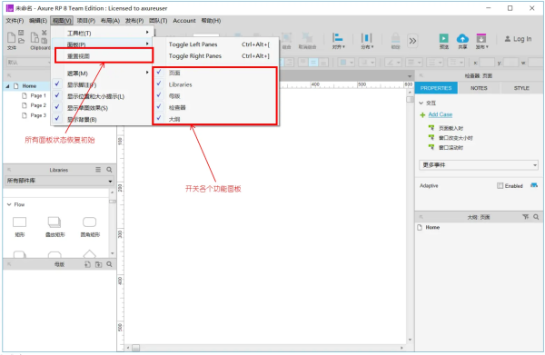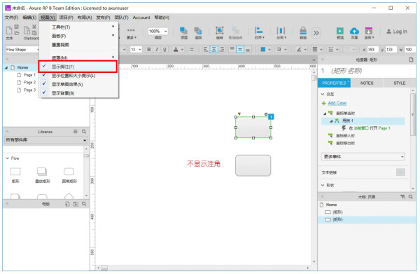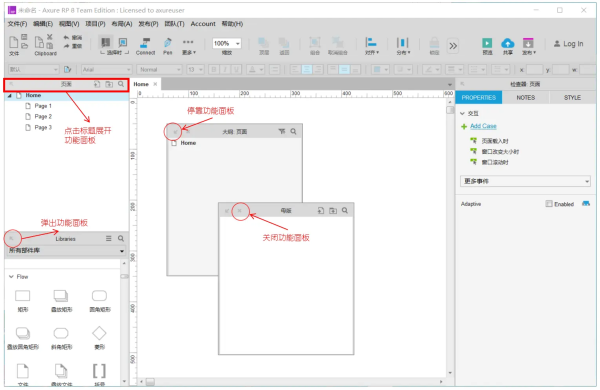 对所设计的页面(包括线框图和流程图)进行添加、删除、重命名和组织页面层次。