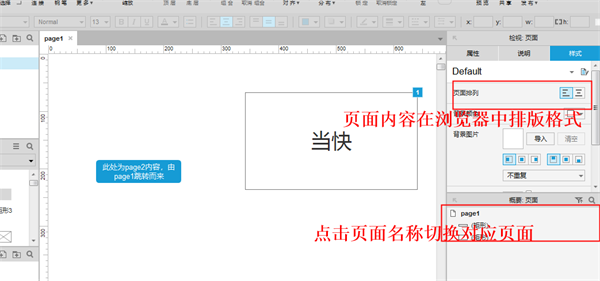 在页面“样式”设置中选择页面居中的按钮。页面居中是指在浏览器中查看原型时封面内容居中显示。