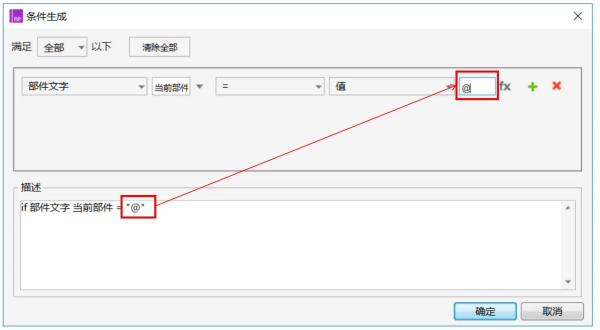 例如,判断当前元件文字包含“@”。