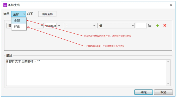 设置执行一个动作必须同时满足多个条件,或者仅仅需要满足多个条件中的任何一个,需要在添加条件的界面中进行设置。